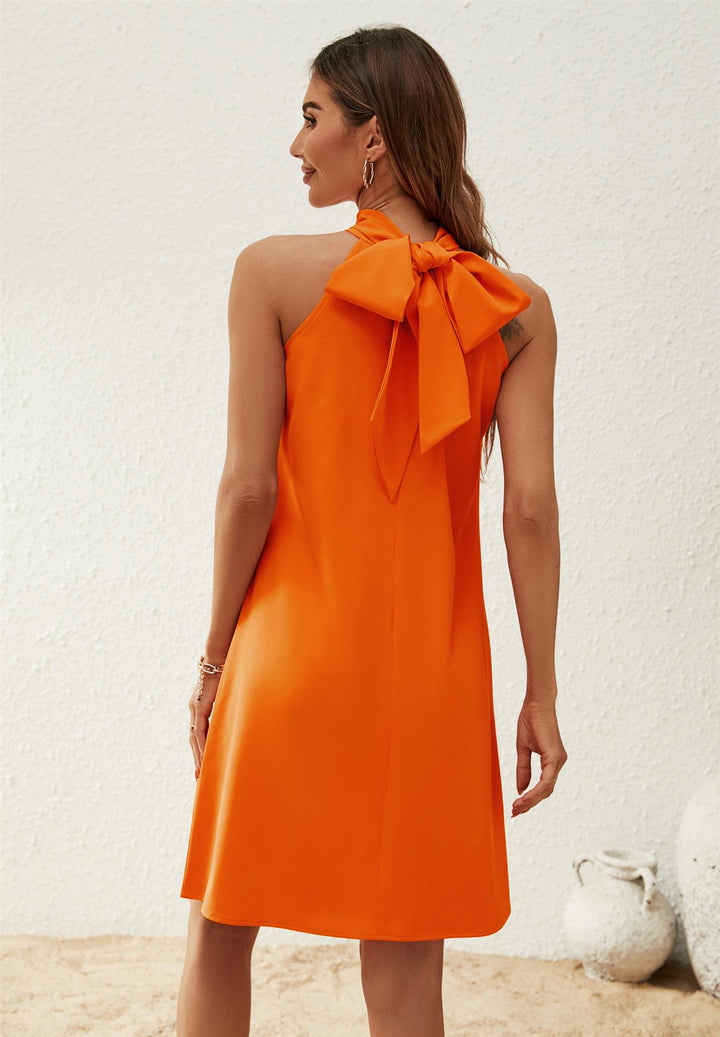 Neckholder-Minikleid mit Bindeband hinten in Orange